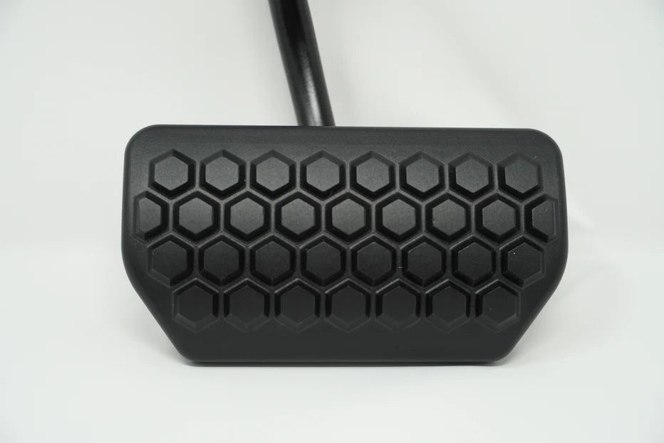 These pedals are 100% Aerospace Grade Billet Aluminum for maximum durability with Precision Hex designs for the best grip possible. All Gas Pedals come with ball bearings on the moving axis connected to stainless steel hardware to give the smoothest action of any gas pedal in the world. They are also perfectly shaped to give the driver more surface area to make Heel-Toeing a dream.