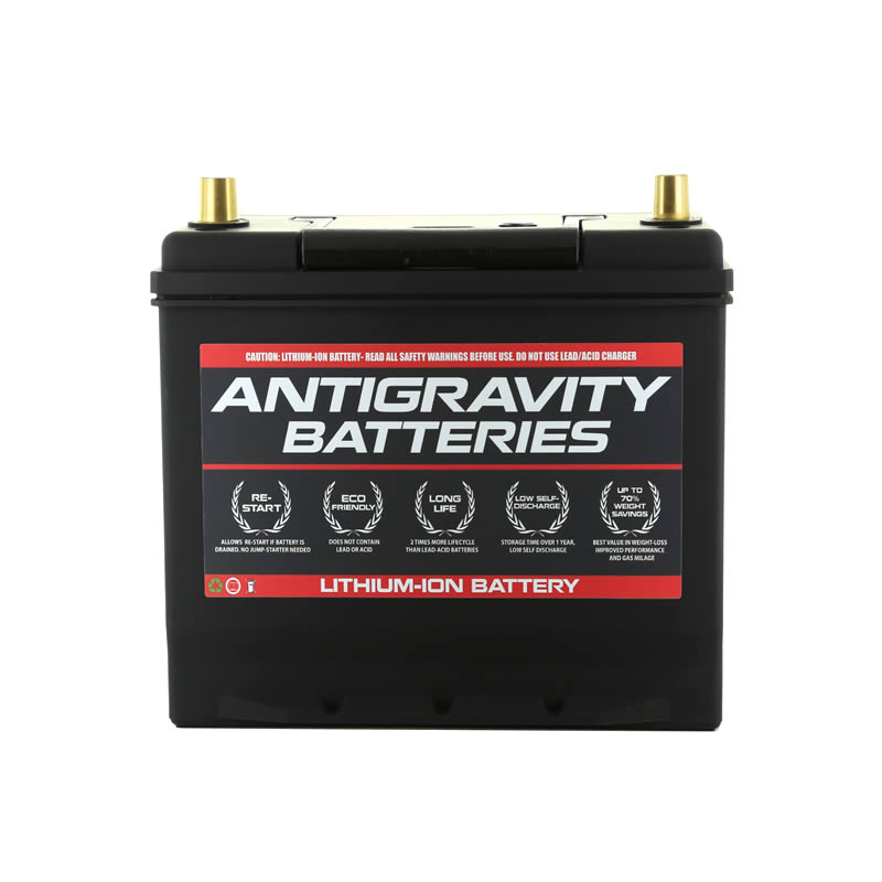 Weight: The ultralight Antigravity RE-START Batteries weigh from 8 lbs to 16.5 lbs (4-7 Kg) depending on the model. On average this equates to a weight loss from 35- 60 lbs (16-27 Kg) over a typical lead/acid battery! The incredible weight savings will increase your vehicle’s performance in several key areas such as handling, allowing shorter braking distances, improved acceleration and even better gas mileage. Additionally, our Lithium-Ion battery is by far the most economical weight loss product on the market! A 30 lbs weight reduction in Carbon Fiber or Titanium would cost over $50,000 dollars compared to roughly $700-$800 dollars for our Battery.