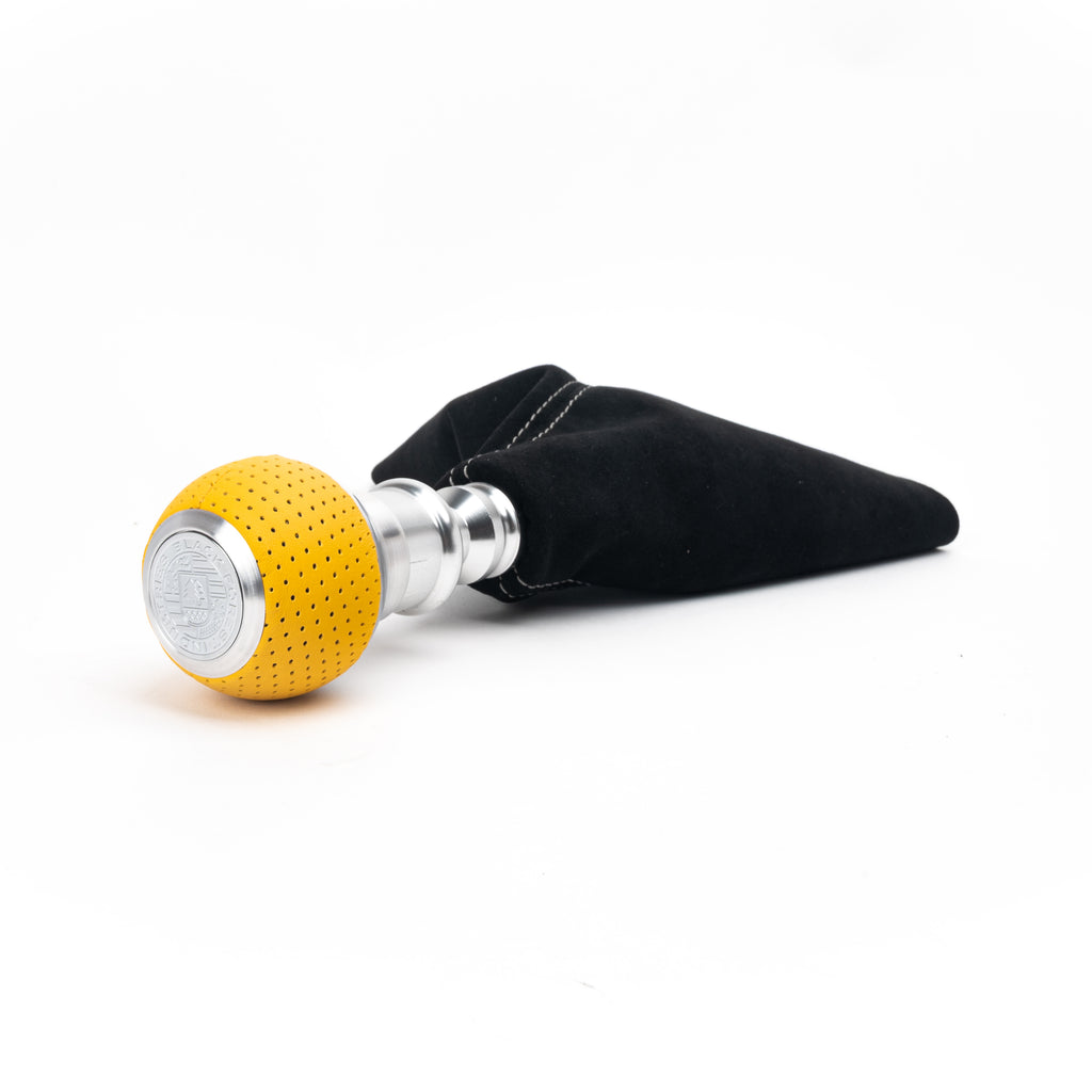 While we've borrowed inspiration from shift knobs past, we think we've really perfected the proportions this time around- with the 3/4 Leather to metal ratio. Visually this thing leaves nothing to be desired. The machining is top notch, and the detailed crest coin gives that classy yet sporting look which elevates any interior's level by at least 50 cool points. You might think that this is a lot of hype for such a little part, but try telling that to us once you've had the chance to hold one of these guys in your hand.