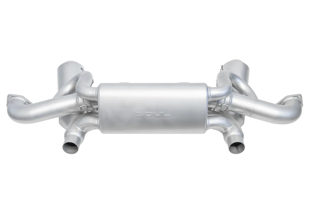Combining our free-flowing Over Axle Pipes with our Valved Exhaust System eliminates the major bottlenecks in the GT4 RS exhaust flow and extracts the most sound and performance potential for the platform, but still allows for comfortable cruising with the valves closed. Owing to the unique oval design of our Over Axle Pipes and the Valved Exhaust’s x-pipes, this system runs a full 3 inches all the way through, ensuring that the 4.0-liter flat-six realizes its motorsports pedigree in every way.