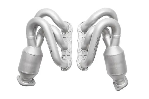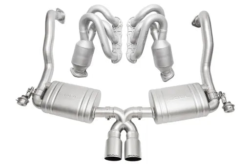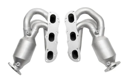 DEVELOPMENT AND TESTING: By creating a unique application for the 981 platform, we’ve focused on sizing the runners (2”) and collectors correctly to extract maximum power from the 3.4L engine while producing great gains from the 2.7L as well. We chose high-flow catalytic converters of an appropriate size to encourage maximum power gains. Don’t settle for smaller, cheaper catalysts when power and durability is concerned. We wanted to be certain that our system offered a superior spectrum of sound – Cup car inspired with valves open but with a refined, no droning tone with valves closed. The SOUL mufflers practically eliminate droning – even with aftermarket headers the sound is reserved with valves closed!
