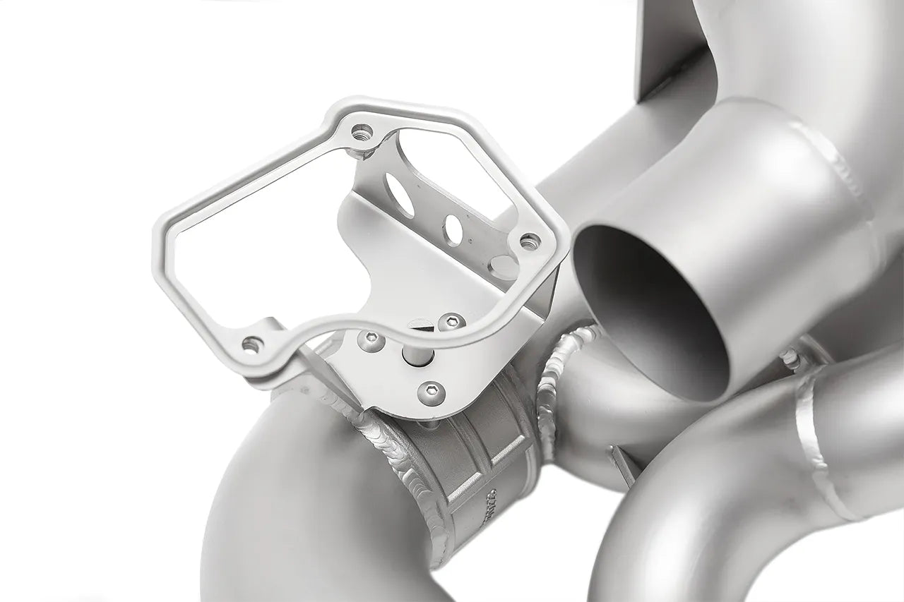 DEVELOPMENT: Our aim was to increase the volume of the rear exhaust while maintaining a refined tone and level of volume – even with upgraded catalytic converter sections. The factory valves are electronically controlled unlike older “open or closed” vacuum style valves. Able to work variably, the valves will gradually open and close depending on several factors of engine operation. Even under full throttle application in Sport mode the valves will still not stay open 100% of the time. With this in mind it was imperative that our system have a smooth transition during valve operation.