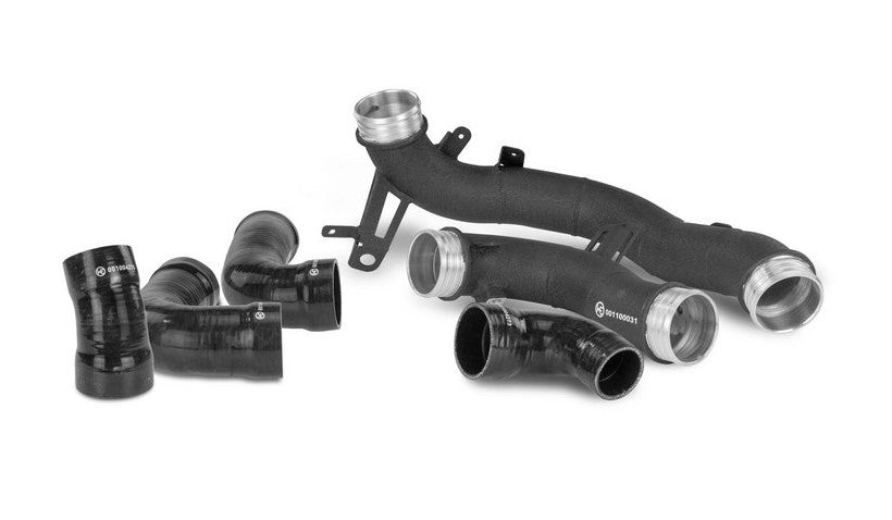 Massively improved performance: The larger diameter of Ø70mm of the aluminum charge air pipes increases boost pressure and optimizes charge transparency. This results in a noticeable increase in performance and a more direct response from the engine.