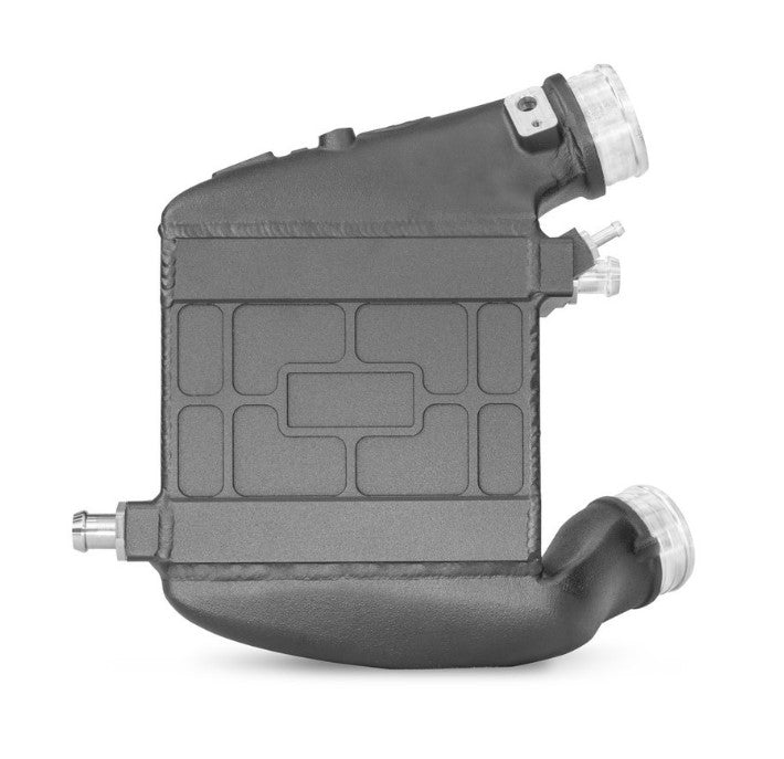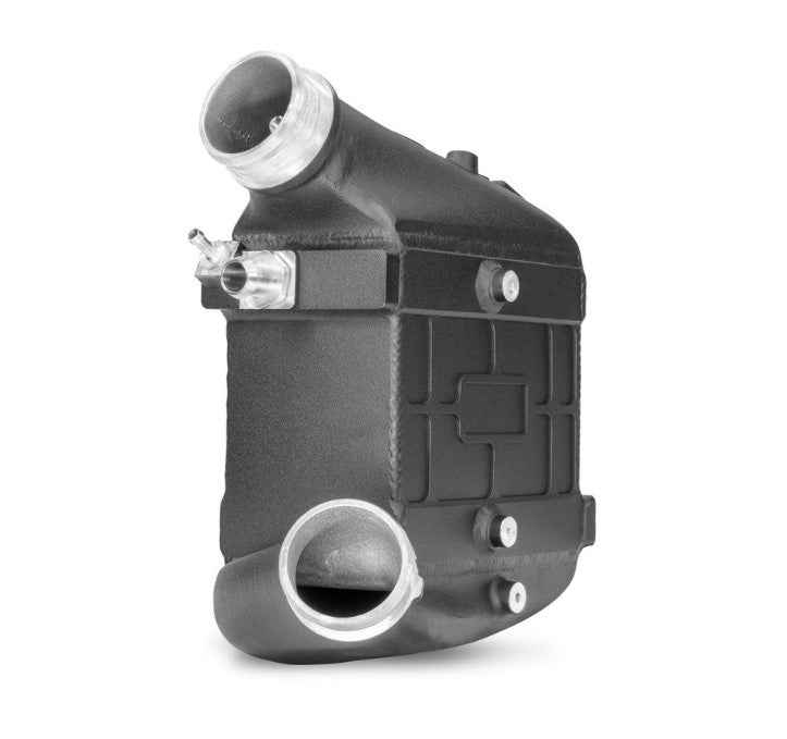 With our new performance intercooler core, measuring 222mm x 200mm x 120mm, we have increased the outer core volume by an impressive 185%. Due to the optimal ratio between the inner and outer cooling surface, we ensure maximum heat transfer and optimal internal air flow. The cast aluminum end boxes were designed in CAD and perfected with the help of CFD simulations. The result is outstanding cooling properties with minimal back pressure. Our high-performance intercooler is therefore also ideal for racing and ensures optimal cooling of the charged air with a significant increase in performance.
