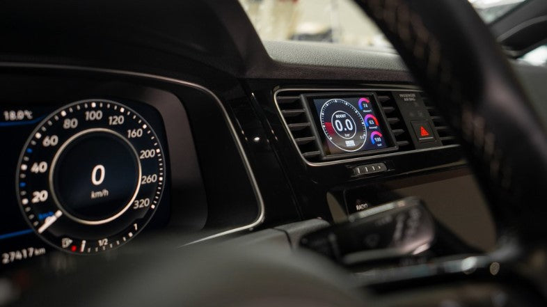 We are excited to introduce our state-of-the-art display for Golf 7 models. This groundbreaking display provides you with comprehensive access to all essential vehicle data. We mean truly all relevant information. Our display reads this data directly via the Can-Bus protocol and presents it on our reliable MFD32 display. The Golf 7 display seamlessly integrates into your vehicle's design and features a custom-made bezel that blends perfectly with the aesthetics.