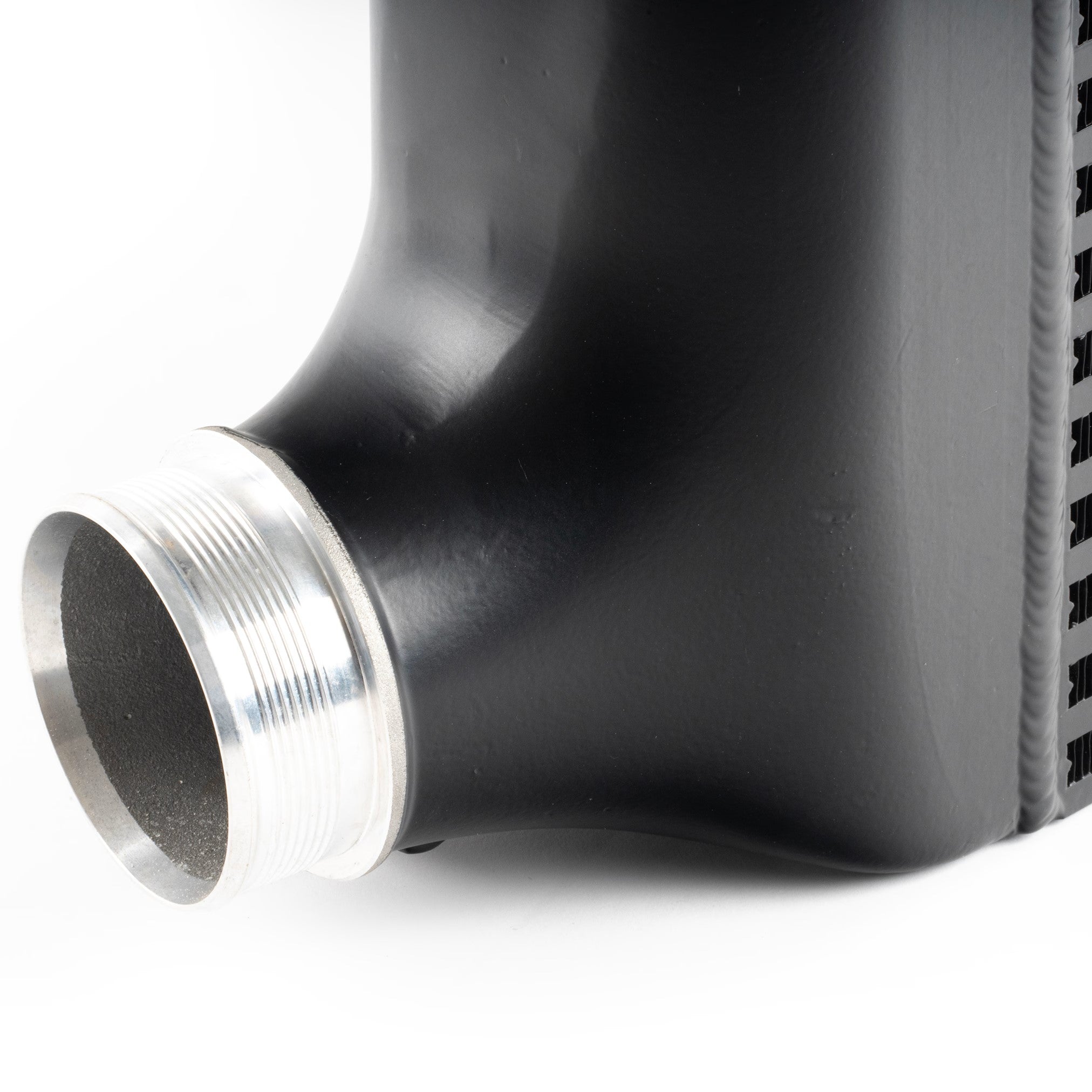 Go full throttle without worry, this intercooler is designed for big boost. The end tank inlets/outlets and aluminum charge pipes are CNC machined with flat-stop edge and beveled grooves for a high-friction surface that grips your hoses and locks them in place for good.