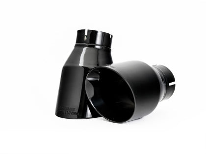 Valve closed for sophistication; valve open for aggression. All at the touch of the SwitchPath™ Remote button. Tone at your fingertips. Equipped with a 3” resonated downpipe, a 3” valved straight section on the driver’s side and 2.5” piping with a muffler on the opposing passenger’s side, the AWE SwitchPath™ Exhaust is capable of changing soundtracks instantly with the touch of the SwitchPath™ Remote button at any time. Drone-free mood control accompanied by addicting, crackling gear shifts and impressive performance. Constant, all-around satisfaction. Note: you may notice a slight valve rattle upon cold start as you would with many factory valved systems. This sound will go away within a few minutes, and you will be off to the races in no time. Tips are are 102mm, slash-cut, include the AWE logo, and are double walled to ensure a mirror finish even under hard usage. All tips are individually adjustable, allowing depth into the bumper to be set according to personal taste.