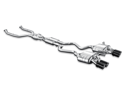 The Evolution performance exhaust system for the BMW M3 consists of dual-outlet mufflers, flow-optimized link pipes, and an X-pipe that incorporates high-flow 100 cpsi sports catalytic convertors and resonators. The power and torque gains of the BMW M3 with the Evolution system are just amazing. A substantial increase is detected over a very wide rpm range, and so it increases responsiveness during all phases of driving. Together with incredible weight savings, the Evolution system dramatically changes the power-to-weight ratio. Our goal was to design a system that delivers a deep, rich growl at cruising speeds while also allowing the driver to enjoy an aggressive roar when driving hard. Complete the look with a set of two exquisite tailpipes in titanium or carbon fibre.