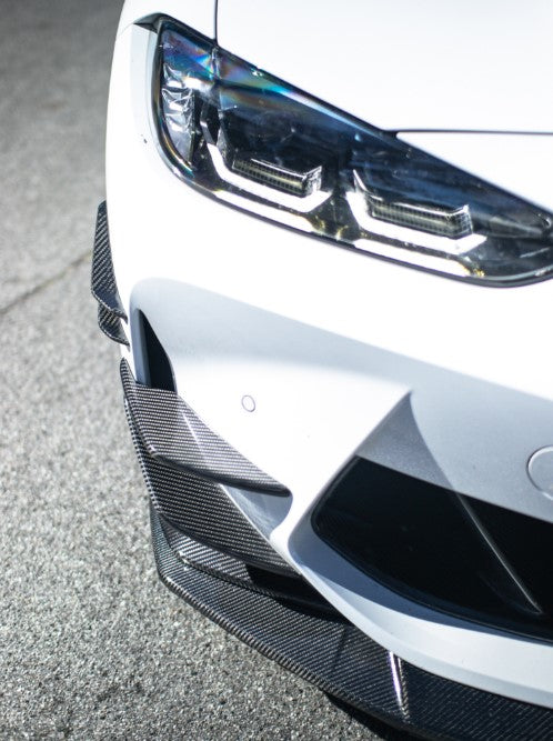 At the core of these canards lies the use of top-quality carbon fiber material, renowned for its lightweight yet incredibly robust properties. The carbon fiber construction not only ensures exceptional durability and longevity but also minimizes weight, resulting in improved aerodynamics and reduced drag. This allows your vehicle to cut through the air with unparalleled efficiency, maximizing speed and agility on both the streets and the track. n summary, the AC Designed G8x Carbon Fiber Canards are a fusion of cutting-edge technology, aerodynamic prowess, and refined aesthetics.