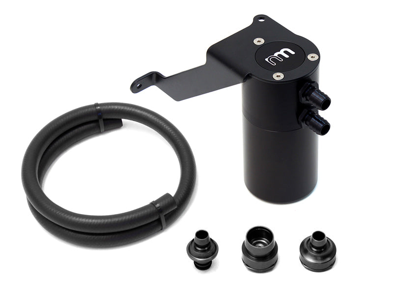 NM Engineering Catch Tank is machined from billet 6061 aluminum alloy and anodized for stealth and added surface durability. The NM tank catches the oil and moisture in the blow-by gas that can cause carbon and sludge build-up in the turbo, intake system, and the engine. Every piece of the kit can be disassembled for thorough cleaning and servicing.