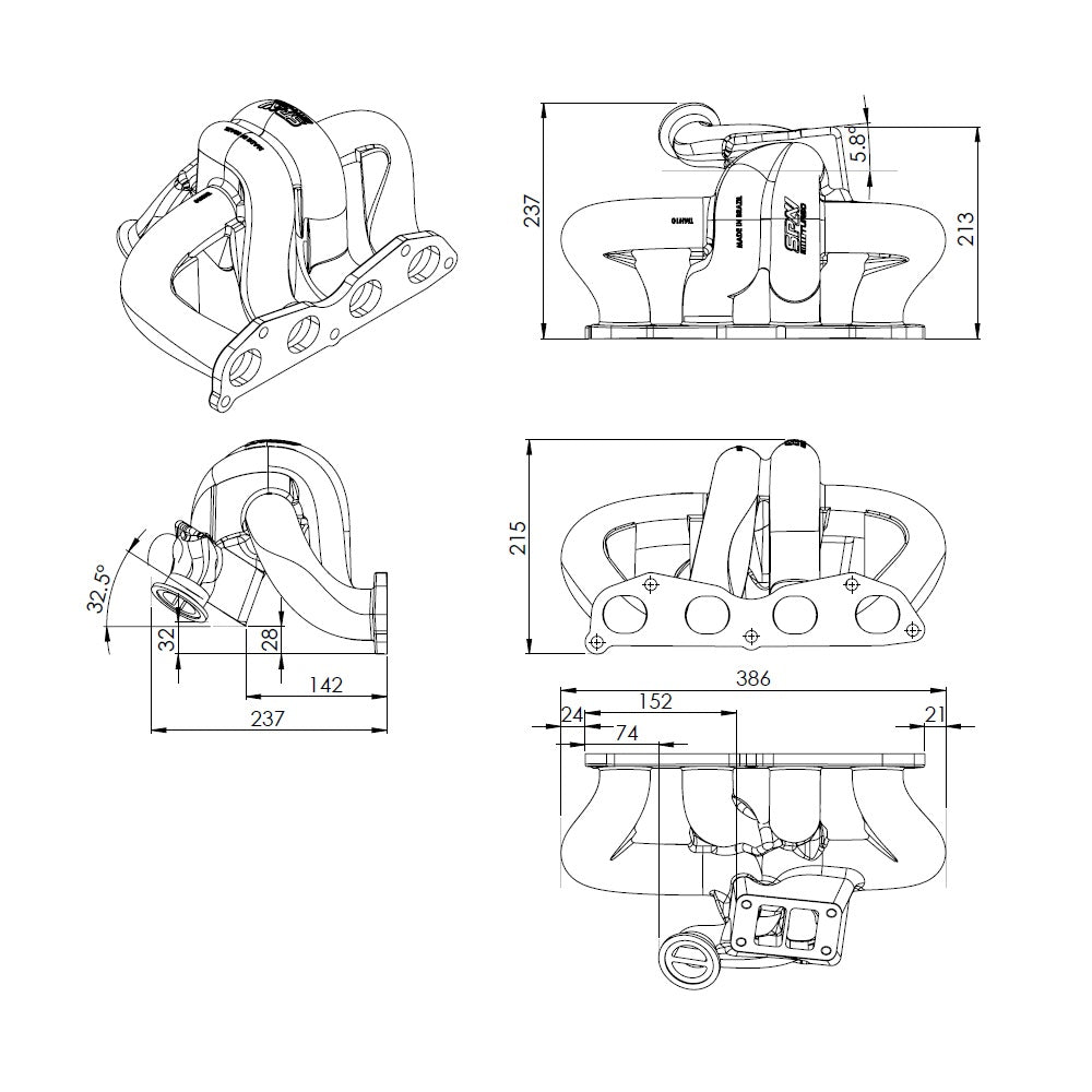 SPA TURBO 8th gen Honda Civic SI (K20 engine) TWIN SCROLL CAST TURBO MANIFOLD V-BAND WASTEGATE