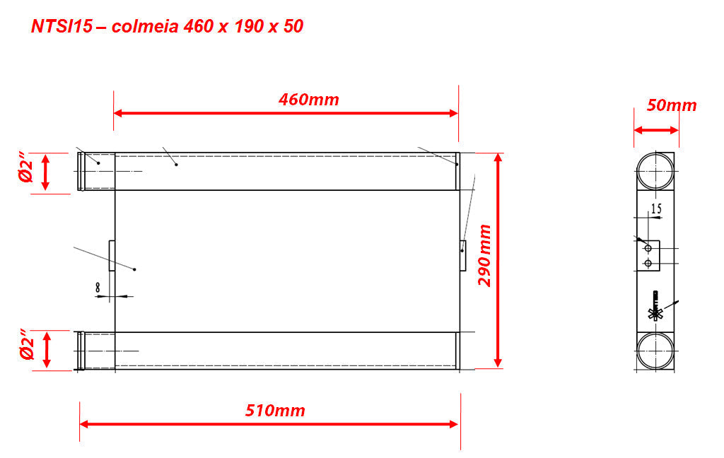 - Air/air intercooler 460x290x50MM bar & plate core;