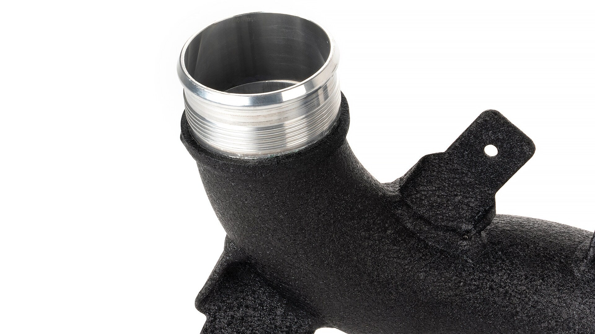 Most aftermarket charge pipe designs bead-roll the end of the thin-walled aluminum tube for the hose connection, creating an easily crushed tube when tightening clamps and leading to boost leaks. Our precision CNC machined billet aluminum hose ends are TIG welded on. This offers an incredibly robust hose connection that will never crush, and the machined large grip-lock ribbing will hold boost hoses tight, so you never have to worry about boost leaks.