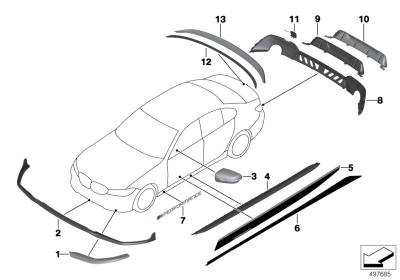 100 percent high-tech. 100 percent pure motorsport character. 100 percent enthusiasm. The M Performance rear diffuser is made of either carbon or high-quality PUR, depending on the style you choose. Especially the distinctive bars provide with their angular look for an even sportier look. The rear diffuser is perfectly tailored to the vehicle and impressively enhances the masculine appearance of the vehicle with its distinctive design.