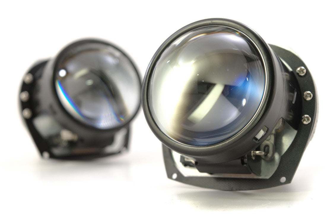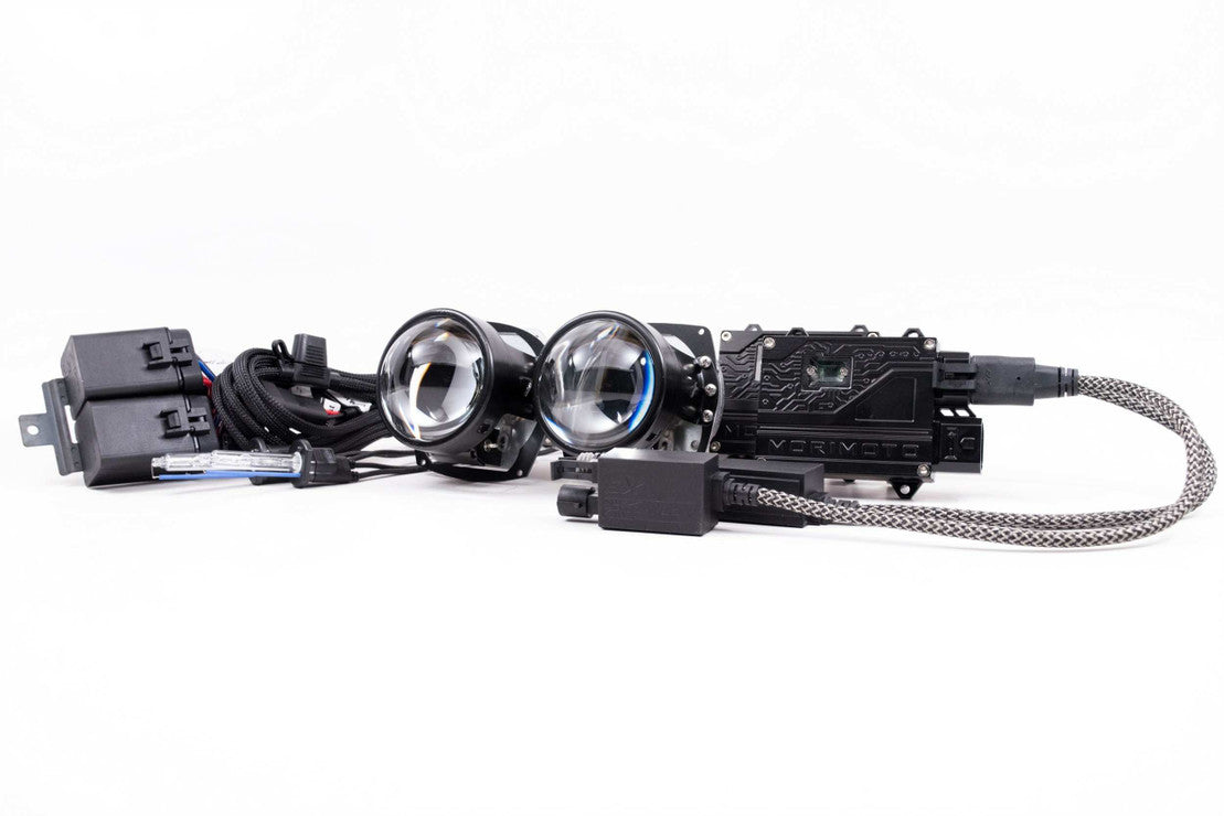 BI-XENON PROJECTORS: Morimoto's most modern bi-xenon, the Mini H1 7.0, was an instant winner upon launch. Representing the first full overhaul of the Mini H1 since way back when the 1.0 came out, it's now one of the most advanced headlight projectors in the world today. Revised reflector optics paired with their curved cutoff shield produces one of the widest low beam patterns we've ever seen, and a high beam that will easily go the distance. Kuria Optic clear lenses maximize intensity throughout, and keep the cutoff line sharp, colorful, and attractive. New side-action solenoids are more than 3x stronger than the old and fussy vertically-sprung units. Result: Maximum light on the ground, zero glare to oncoming traffic.